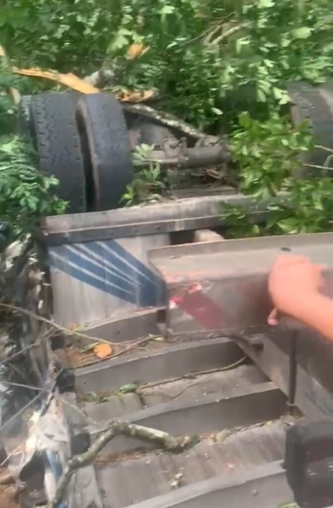 “Chegamos ao local e constatamos que o caminhão estava tombado com as rodas para cima, tivemos dificuldades para chegar e abrir a cabine, onde encontramos as duas vítimas, e com a ajuda de guinchos conseguimos chegar a terceira vítima, infelizmente todos em óbito. Fizemos o nosso melhor, foi mais de 5 horas de trabalho, com uma equipe unida, com o apoio e estrutura da prefeitura, através da Defesa Civil, Divisão de Trânsito, Samu e principalmente da comunidade, que nos auxiliou com suprimentos”, declarou o Tenente Brilhante do Corpo de Bombeiros.