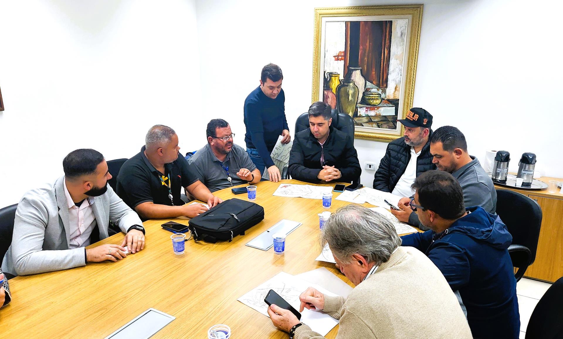 O encontro aconteceu no Gabinete do Prefeito e contou com a presença do chefe do Executivo, Dr. Ramon Corsini; dos secretários municipais Dr. Fernando Andrade (Obras e Serviços) e Guilherme Palmezano (Planejamento e Meio Ambiente), acompanhado do engenheiro civil Wilson Junior; além dos vereadores Soares, Giba, Alex Napoleão, Irmã Rose e José Martins. Também participaram representantes da empresa InfraSP3, responsável pela execução do programa estadual “Se Liga na Rede”, que atua na conexão de domicílios ao sistema de esgotamento sanitário em regiões de maior vulnerabilidade social.