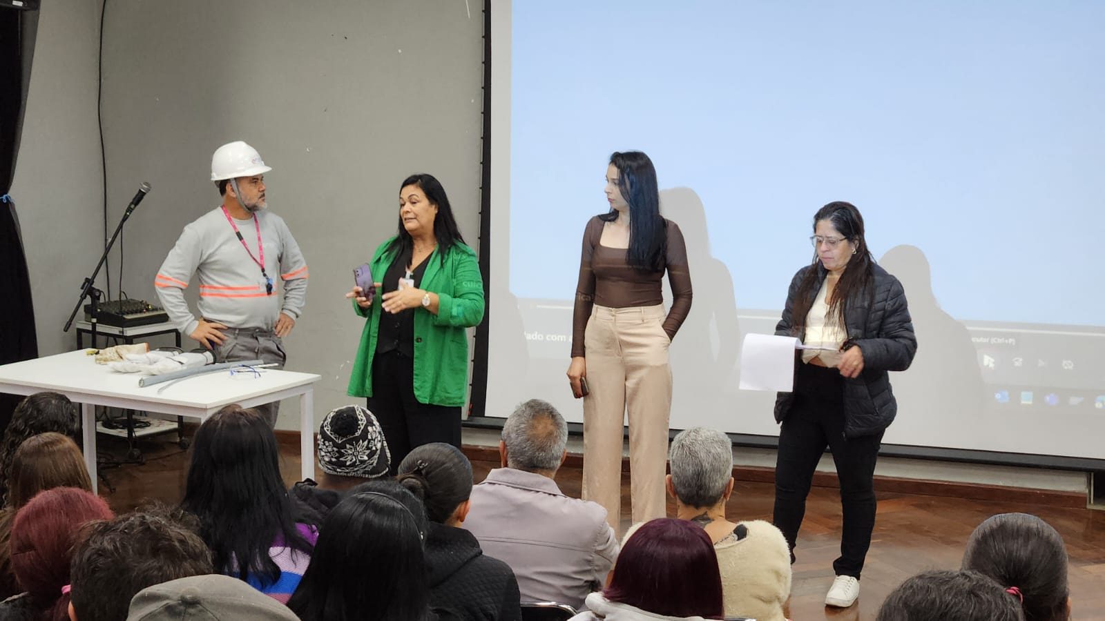Durante a apresentação, foram destacados pontos essenciais, como os riscos de fios elétricos expostos, o uso inadequado de extensões e benjamins, além de práticas comuns que podem levar a curto-circuitos e incêndios, como carregar celulares de forma insegura ou fazer emendas de fios em eletrodomésticos. Casos reais também foram trazidos à discussão, os relatos reforçaram a necessidade de atenção e conhecimento sobre como agir em situações de risco.