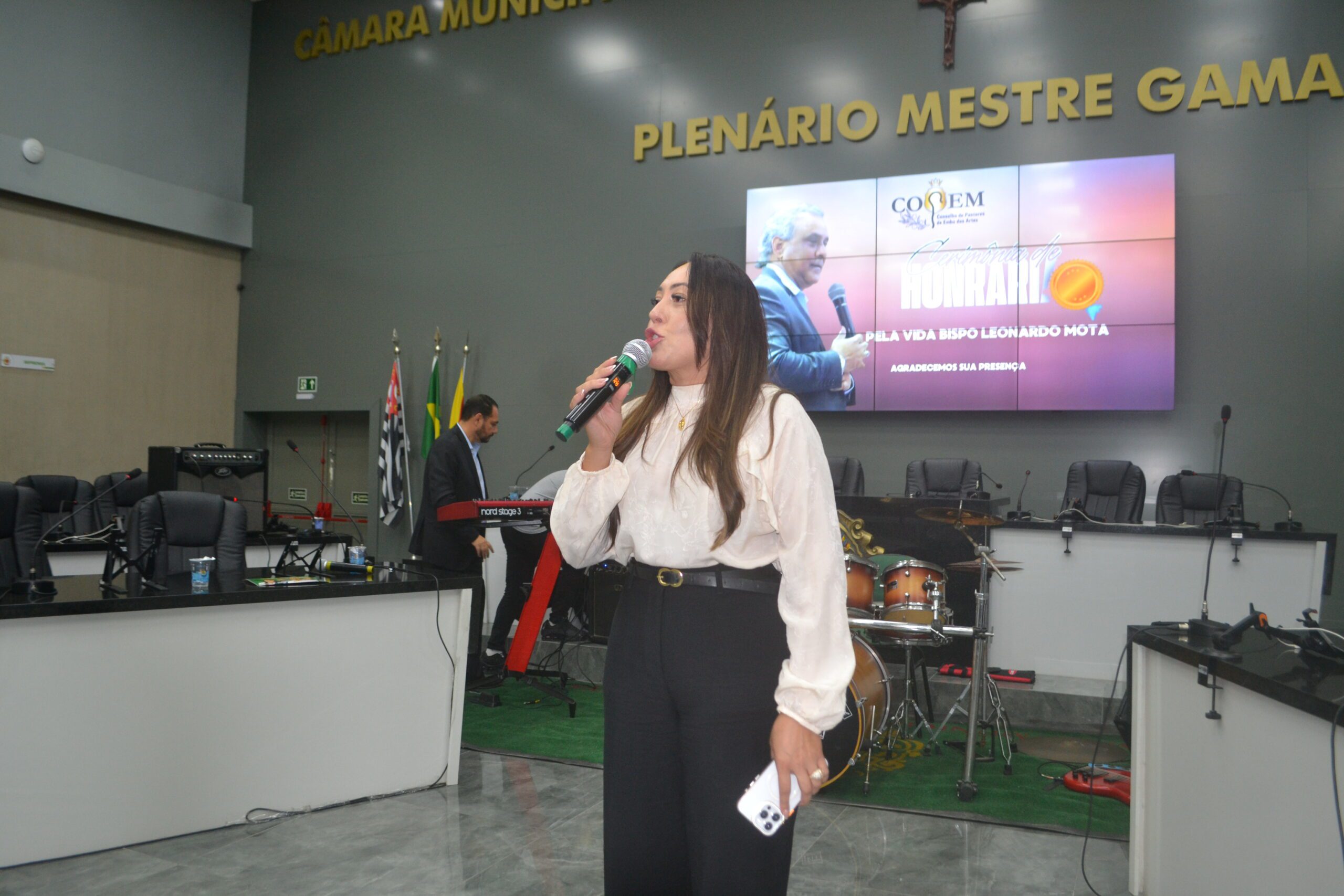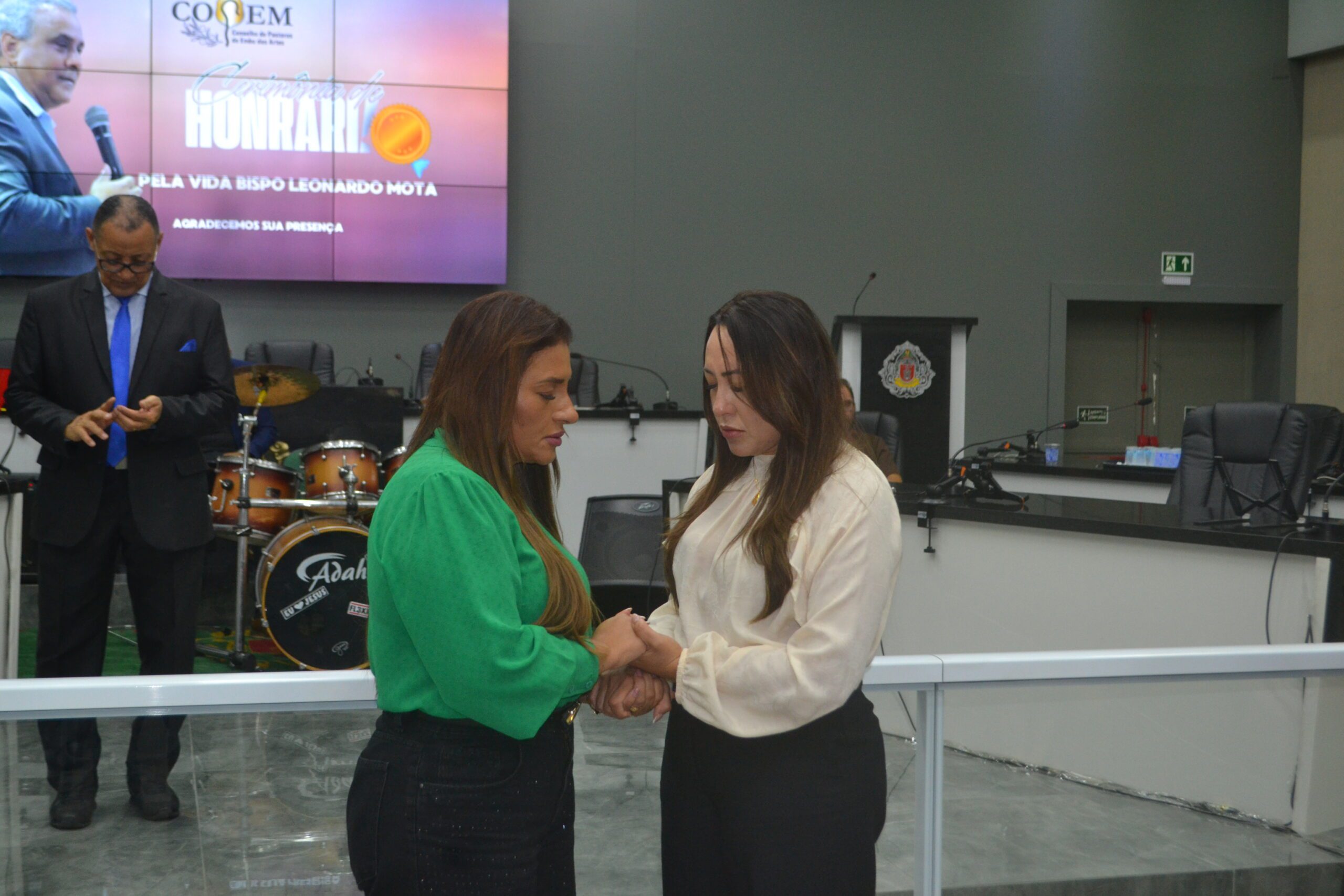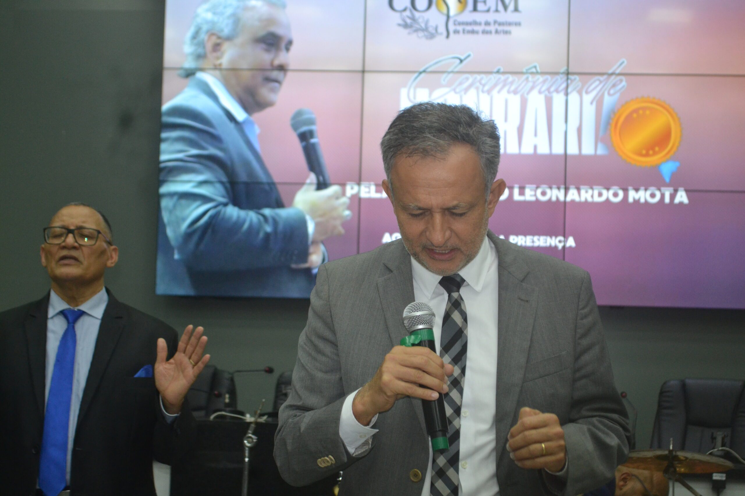 Antes da entrega da honraria, o Pastor Marco Roberto usou a palavra e manifestou a importância do trabalho do homenageado. “Para mim é um prazer estar aqui nesta noite, nesta homenagem ao nosso grande líder Bispo Leonardo Mota, quem conhece o trabalho evangélico de nossa cidade, conhece a dedicação e o trabalho do nosso amigo Leonardo Mota, você é merecedor e você sabe disso, não esqueceremos jamais do seu trabalho em prol do povo evangélico”, declarou o Pastor Marco Roberto da Igreja Casa da Benção.